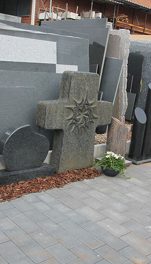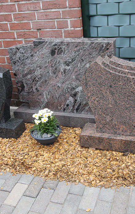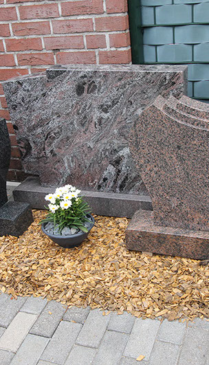 Wir bieten Ihnen ein umfangreiches Sortiment von verschiedensten Grabmal-Steinen an. Wir beraten Sie in Fragen der Material-Beschaffenheit und Pflege. Die Form des Grabmals fertigen wir so, wie Sie es sich vorstellen.